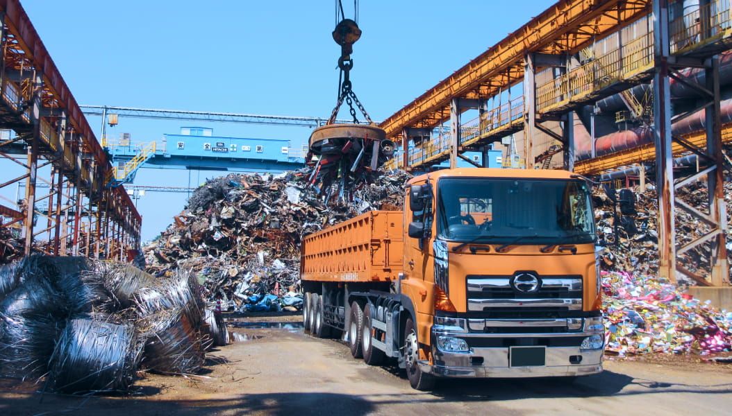 伊藤製鐵所グループのシナジーを最大限に活用し、鋼材納入後の帰り荷として、鉄筋の原材料となるスクラップを引取運搬。循環型社会を輸送で支えています。